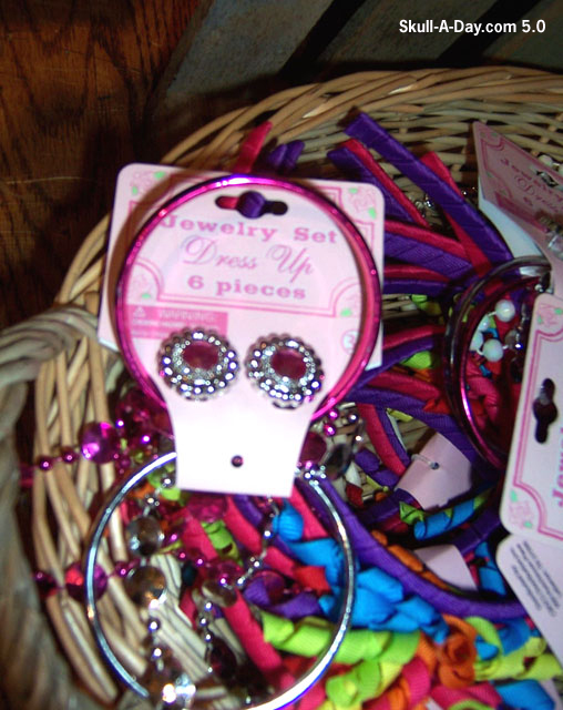 And another Virginian, Dolores, caught this dazzling skull while stopping for a bite. "We were coming home to VA from Boston having attended our neice's graduation from Northeastern. Of course when you stop at The Barrel you have to look around at the tchotchkes and voila...there it was....earrings and bracelet Skully!:)"